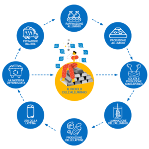 Nonostante la sua lunga storia (ormai 200 anni di vita!), il 75% dell’alluminio prodotto in tutto il mondo fino a oggi è ancora in uso, a dimostrazione che l’alluminio è infinitamente riciclabile. L’Italia, insieme alla Germania, detiene il terzo posto per quantità di materiale riciclato, dopo Stati Uniti e Giappone.