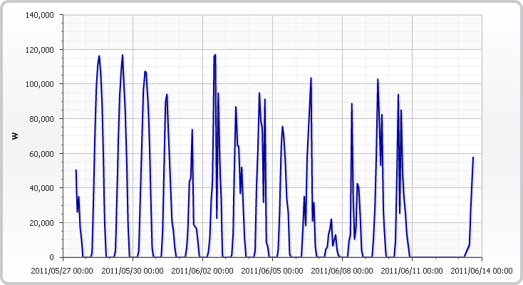 Se possiedi l'Username e la Password, accedi all'area dati di produzione istantanea e cumulata dell'impianto, premendo il tasto sx sul grafico: